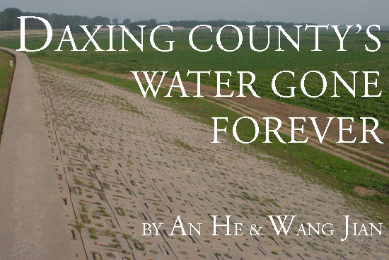 Oh, you know, I am a native of Beijing! As I remember, it used to rain in all four seasons and there was an annual rainfall of 1000 millimeters, whereas now there wouldn’t be more than a few hundred millimeters. I’ve heard that the South to North Water Diversion Project includes a small outlet for Daxing, in the west at Beicheng Village. When the water comes from the south do you think that they will give us a little?