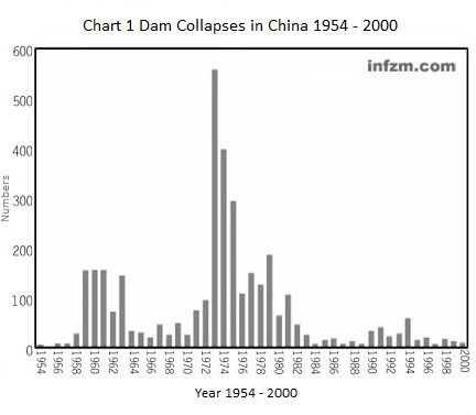 Based on the statistics provided by He Xiaoyan (one of the authors of “Statistics and Preliminary Analysis of Incidents with Dams and Reservoirs in China,” who is now working in the Department of Flood-Control and Disaster Reduction of the China Institute for Water Resources and Hydropower Research), there were a total of 3,481 dam collapse incidents in the 50 years from 1954 to 2003 (excluding Taiwan). He Xiaoyan points out that: