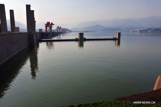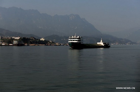 A cargo ship in Xiling Gorge, in the upper reaches of the reservoir. Oct. 18, 2011 (Xinhua/Zhang Xiaofeng)