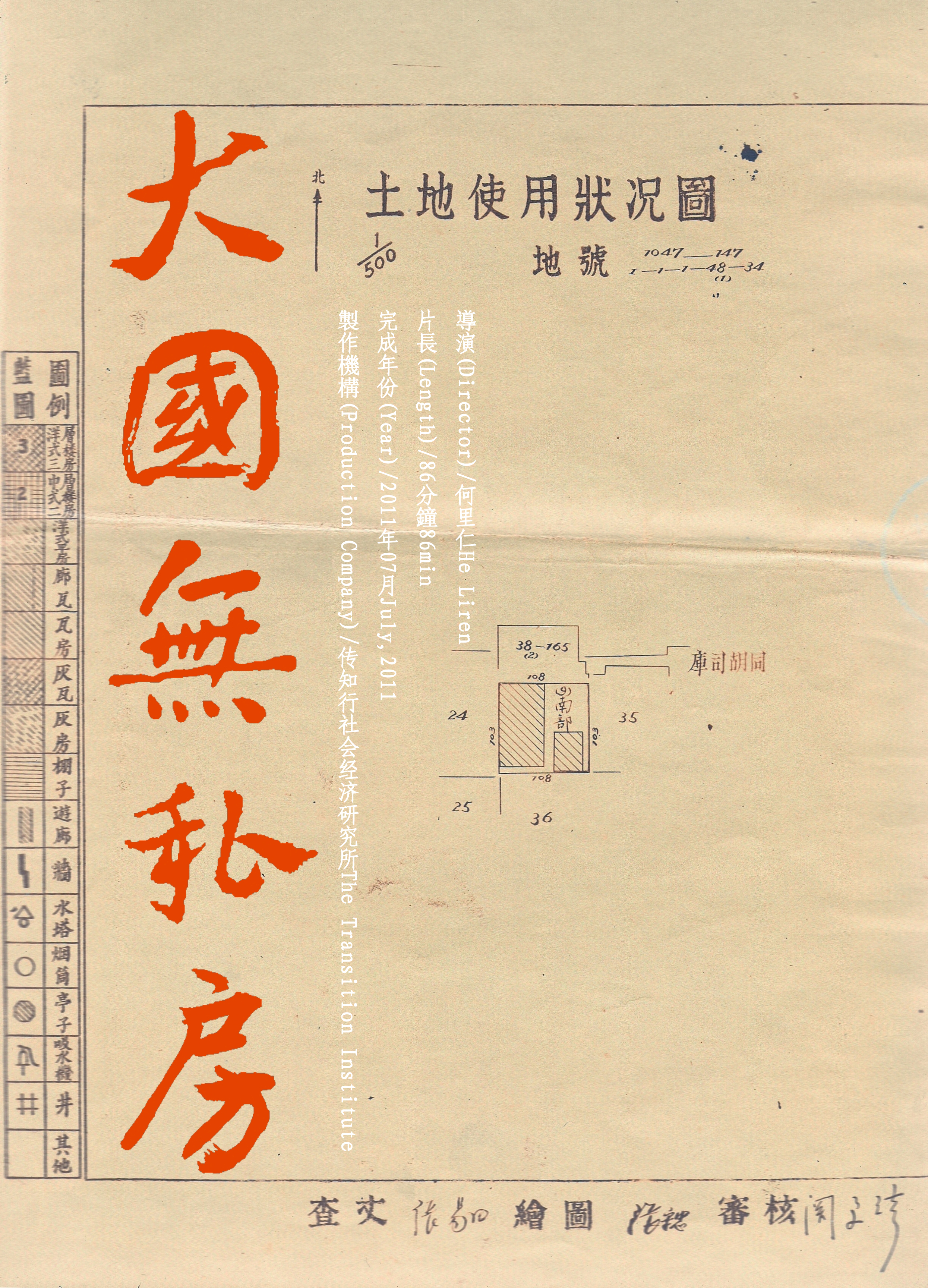 He Liren works for the Transition Institute, an NGO and think tank that researches China’s most pressing social issues. This is He’s first film. At the end of 2007, He started to survey and collect information on China’s private real estate market. While shooting the film, He traveled to Beijing, Nanjing, Hangzhou and Changsha, and finished filming in 2010. The final editing of the film was completed in July, 2012.