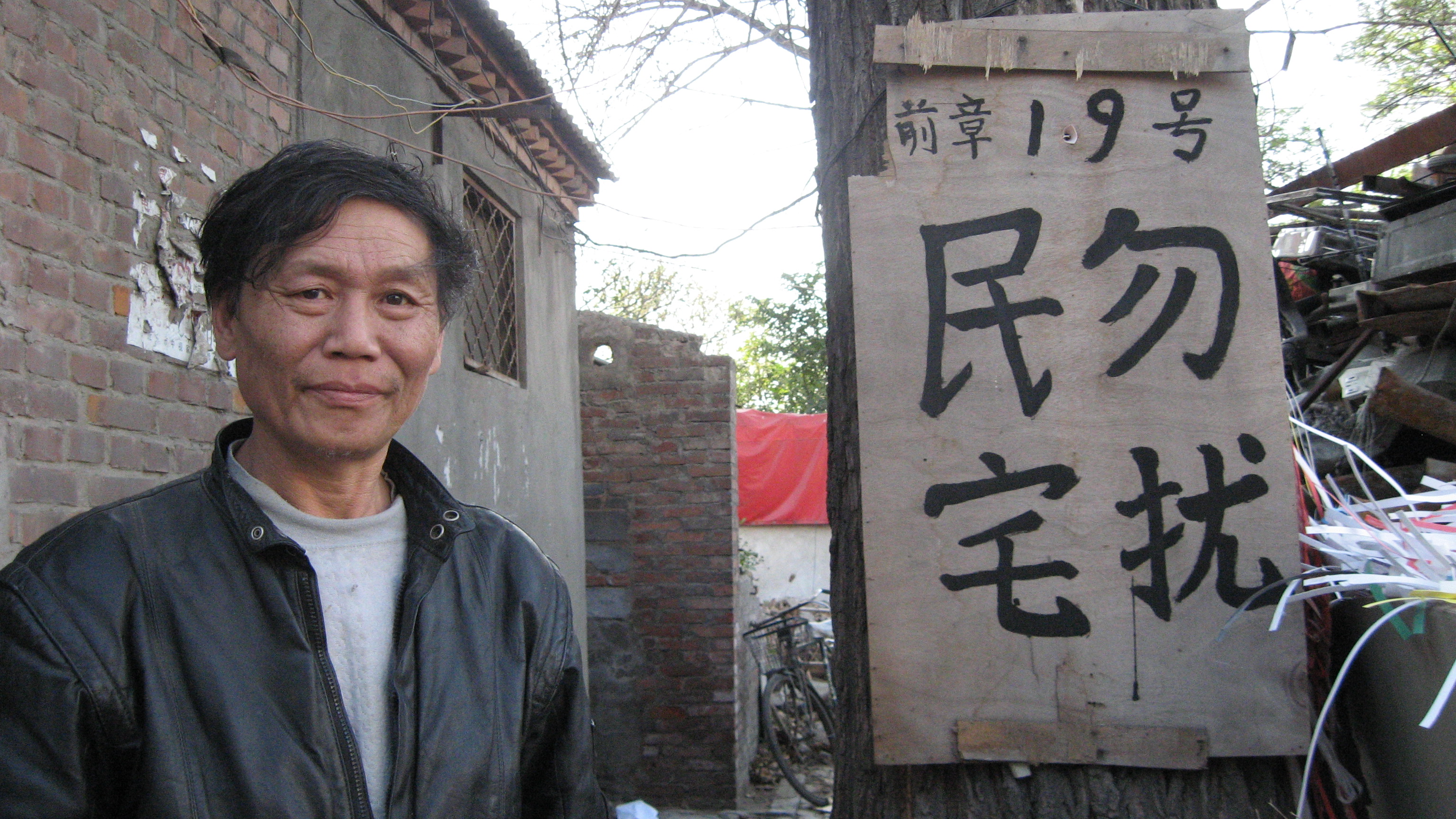 Dong Jiqin, outside his home on November 2, 2008. His house was torn down soon after this photo was taken. The sign reads “民宅勿扰” – Private house: Do not disturb.