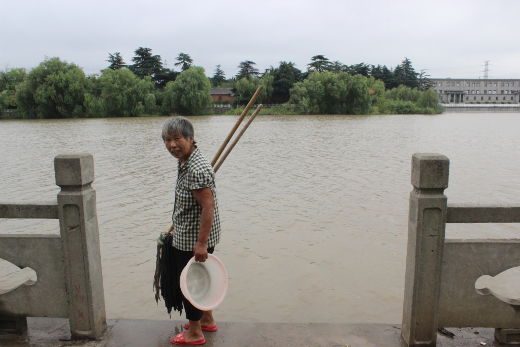 A woman washes cleaning supplies in the Yangtze river in Jiangdu, the beginning of the eastern route of the SNWDP. Quartz / Lily Kuo.