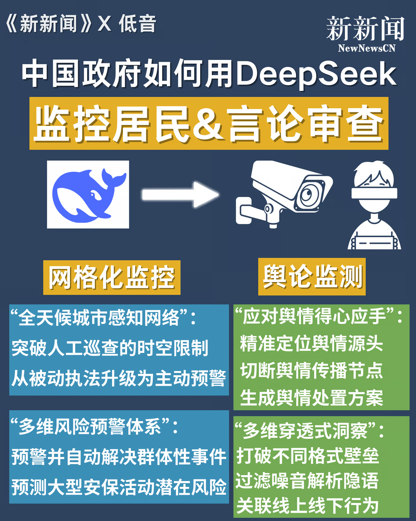 Over the past month, numerous local governments in China have announced their adoption of the latest DeepSeek model. According to an investigation by “NewNewsCN,” grassroots government departments, public security agencies, Party media, and official monitoring equipment suppliers have applied DeepSeek to China’s grid management, speech censorship, and political stability maintenance.