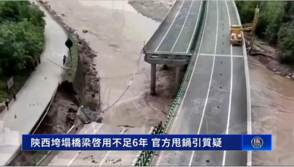 Figure 3: At approximately 8:40 p.m. on July 19, 2024, a highway bridge in Zhashui County, Shangluo City, Shaanxi Province, was washed away by floodwaters, resulting in vehicles falling into the water and people missing. Image source: CCTV News.