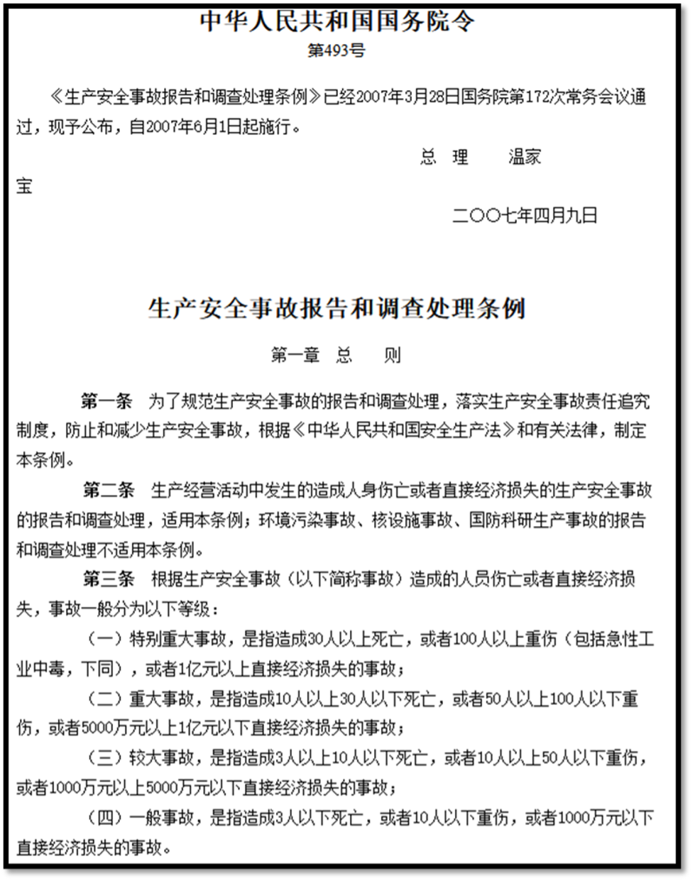 [4] Regulations on Reporting and Handling Production Safety Accidents, adopted at the 172nd Executive Meeting of the State Council on March 28, 2007, and effective from June 1, 2007. https://www.gov.cn/zwgk/2007-04/19/content_588577.htm