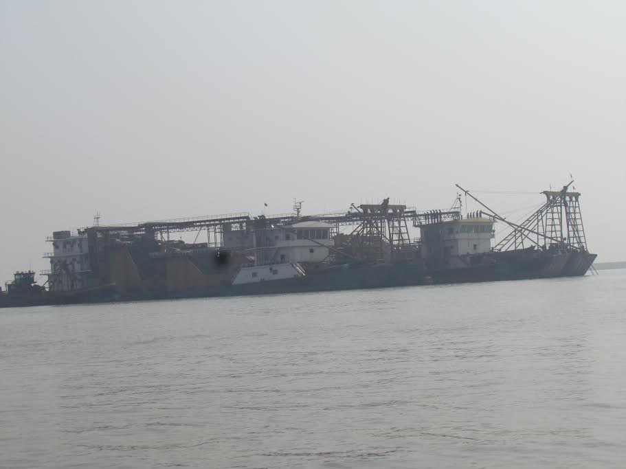 ‘It’s a different story on the “real” Lake Poyang: a huge dredger works day and night taking sand from the bottom of the lake.’